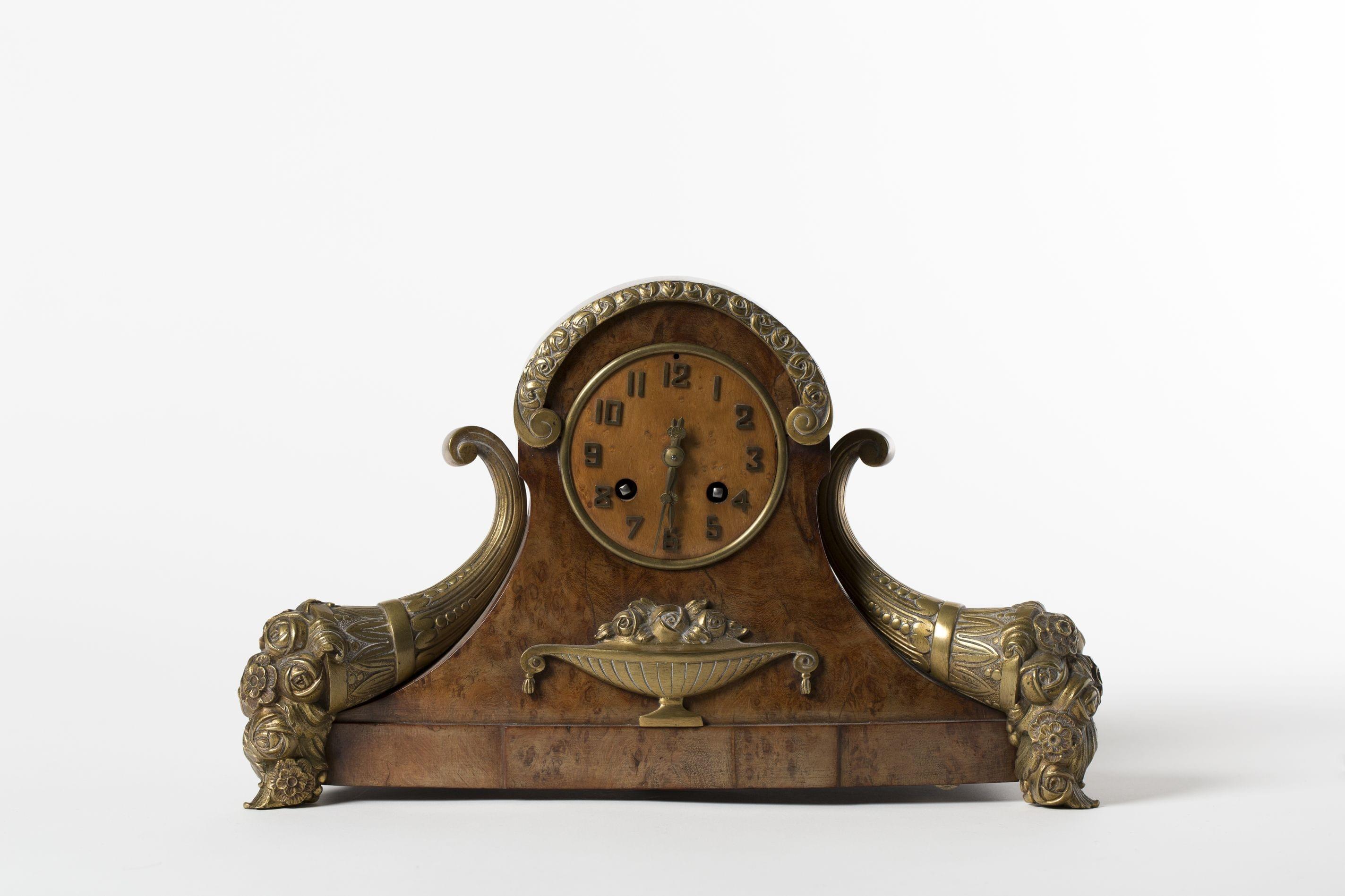 Laiton ajouré et ciselé, cadran aux chiffres romains, H 38 cm