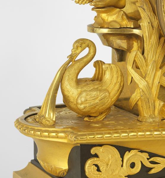 Marbre noir, bronze doré et cadran émaillé blanc signé Becker Pa...