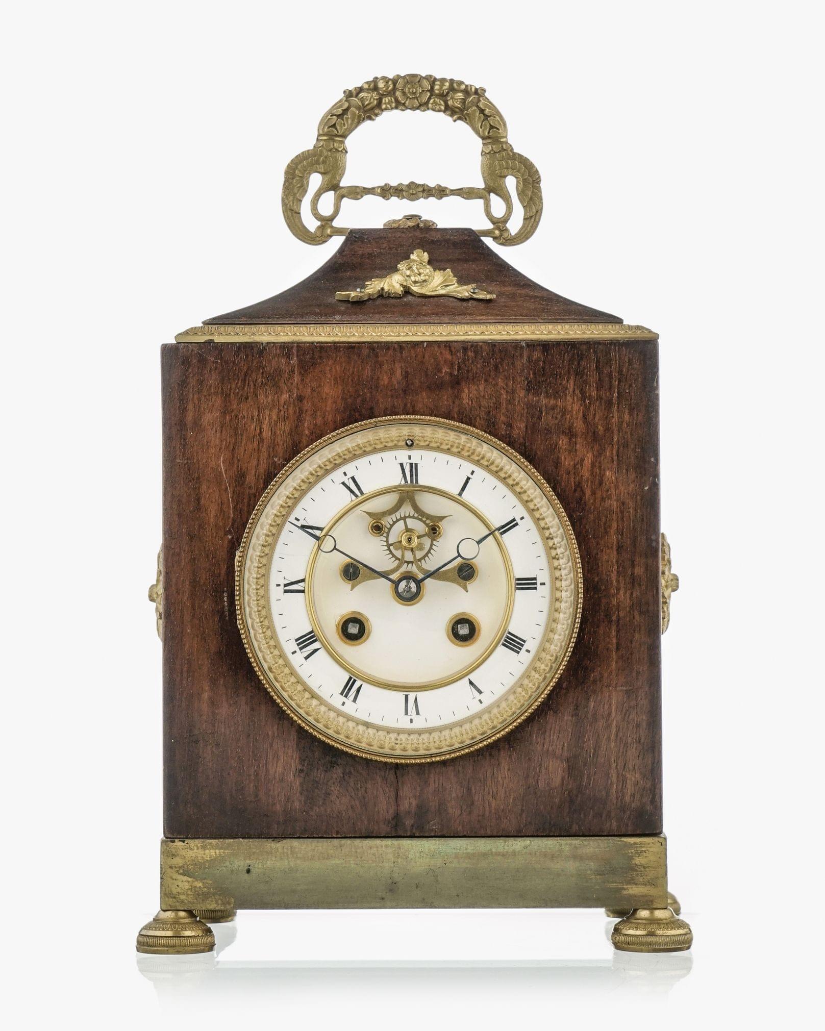 Cadran émaillé blanc, acajou et bronze doré, H 30 cm