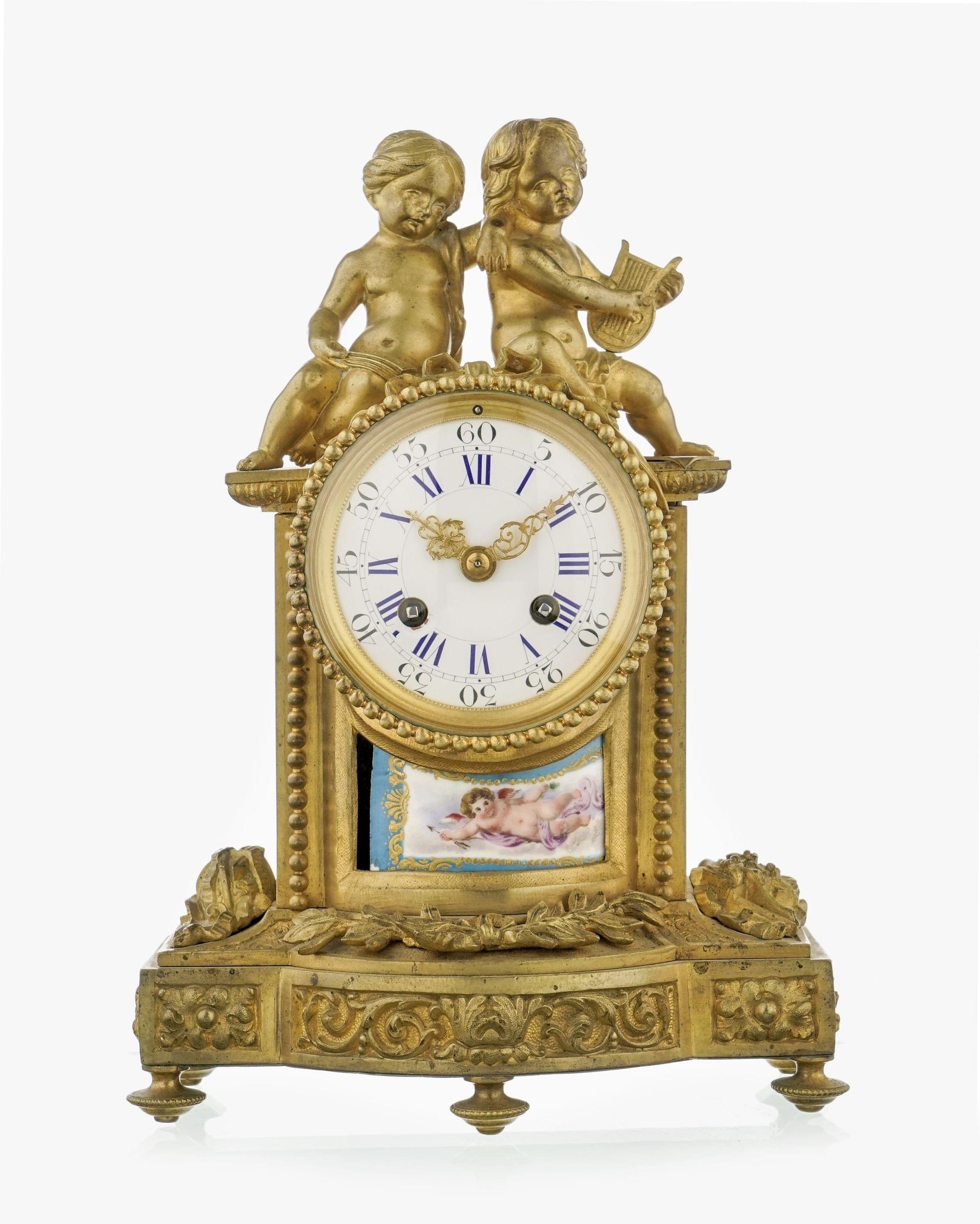 Bronze doré et plaques de porcelaines peintes à décor de fleurs, 29x20x11 cm