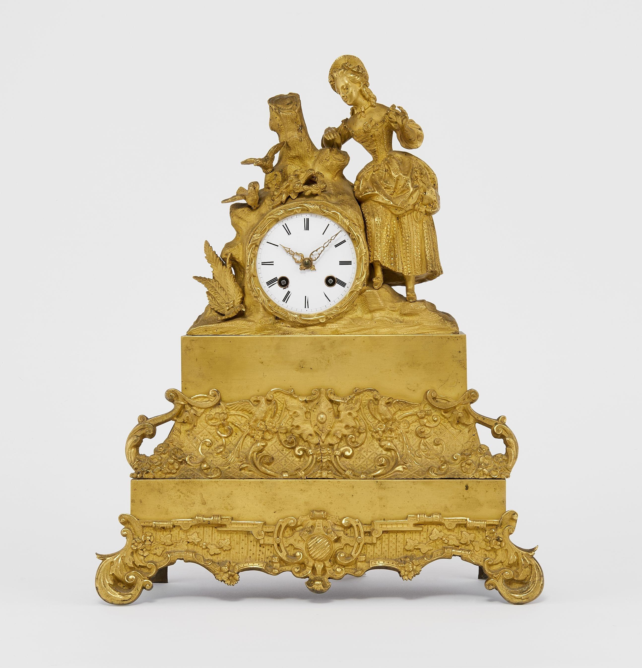 489. Pendule d'époque Restauration à décor d'une bergère