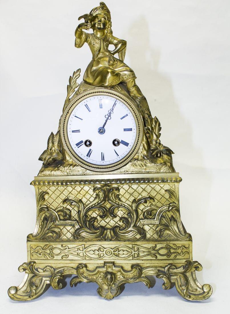 Bronze doré, cadran émaillé blanc, H 32 cm