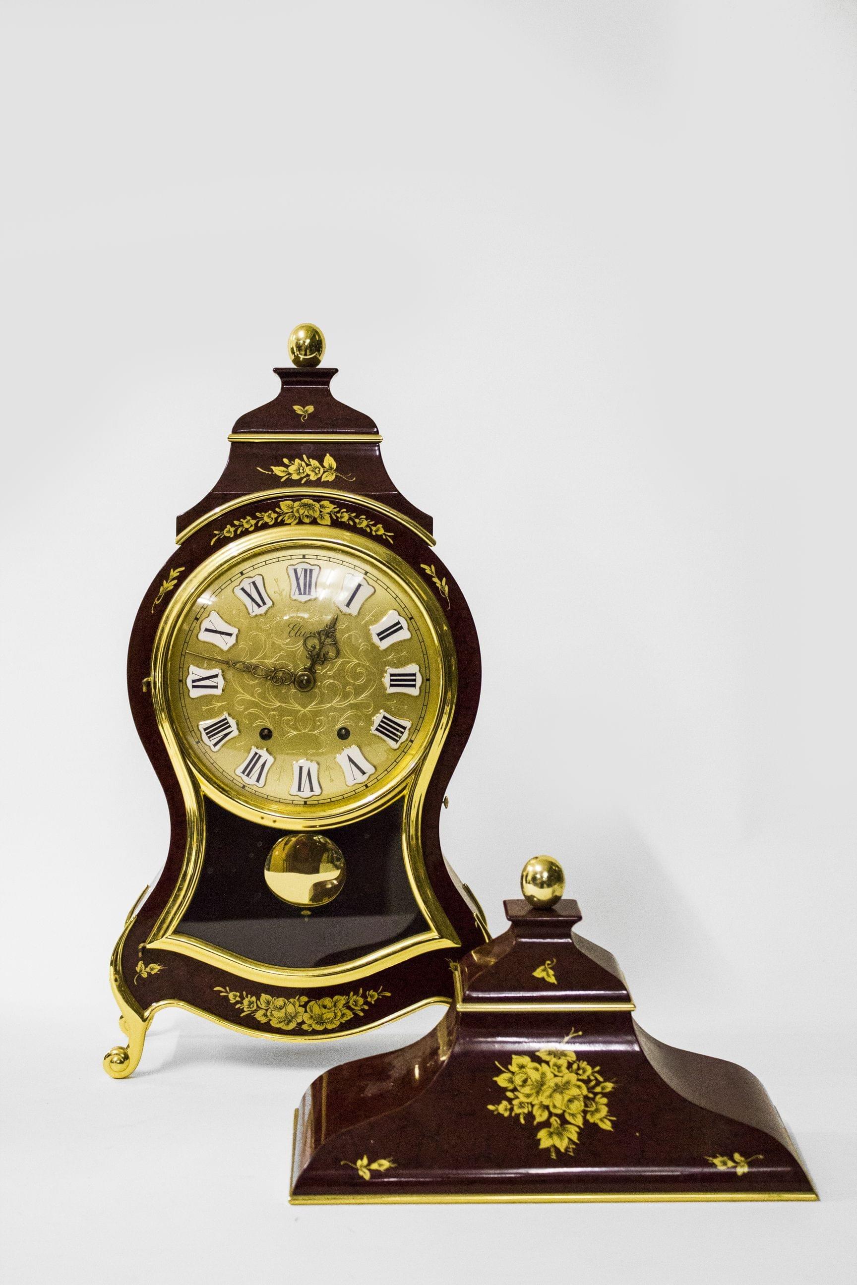 Bronze patiné et doré, marbre blanc, cadran émaillé blanc, H 29...