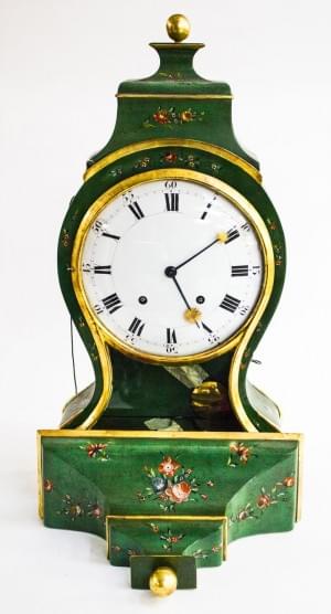 Cadran vert, chiffres romains et aiguilles stylisées dorés, sur...