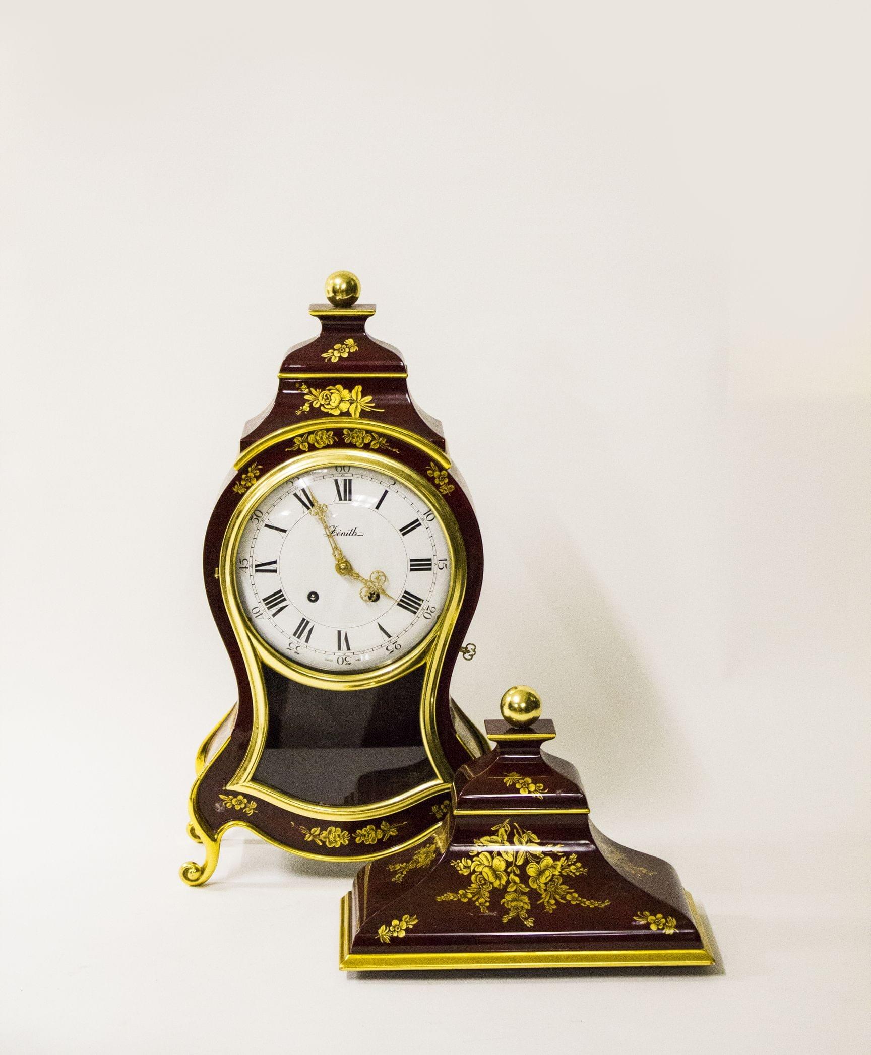 Bronze patiné et doré, marbre blanc, cadran émaillé blanc, H 29...
