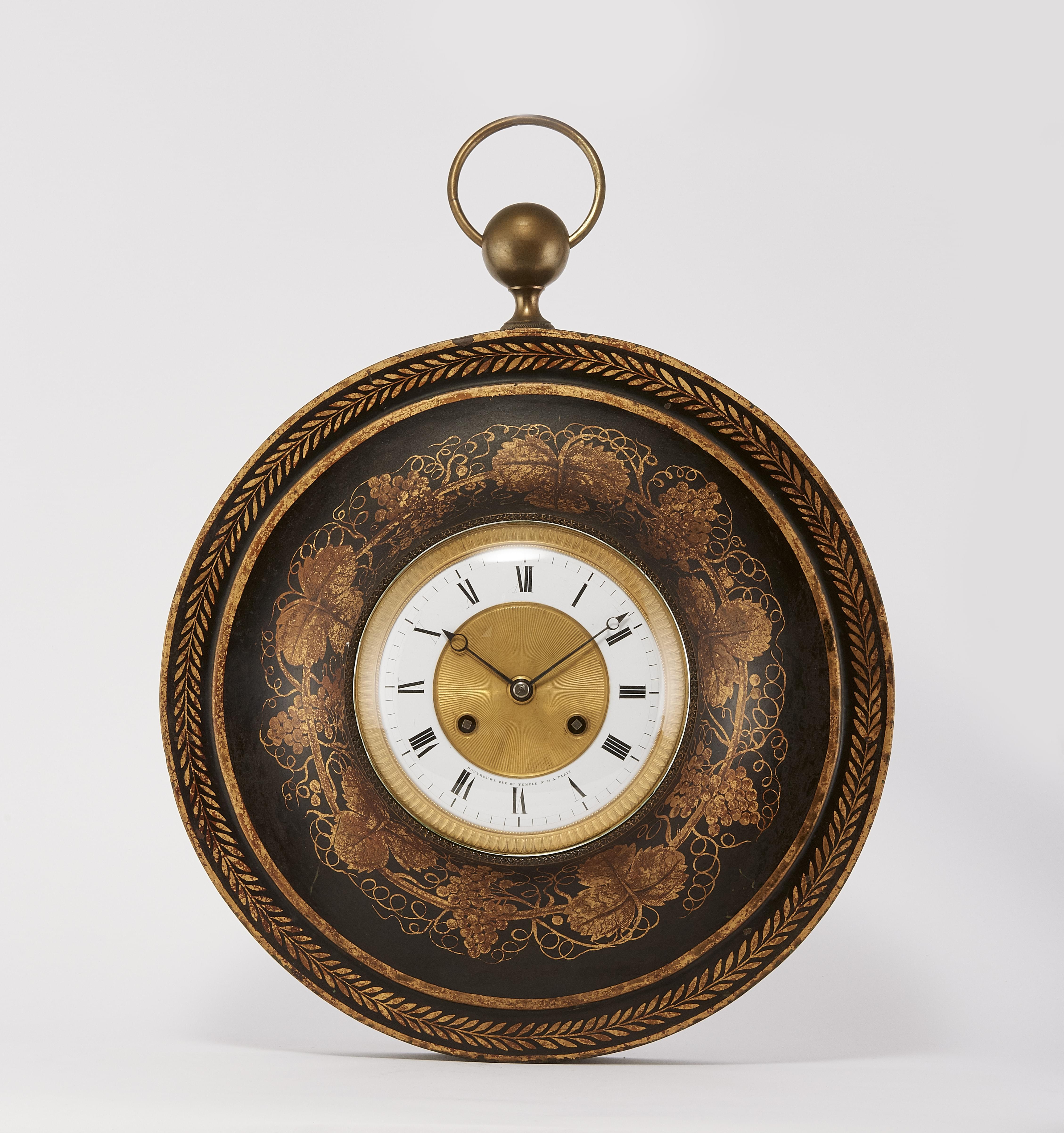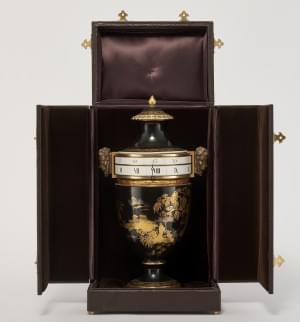 896. Vase néoclassique formant pendule tournante à décor doré au chin...