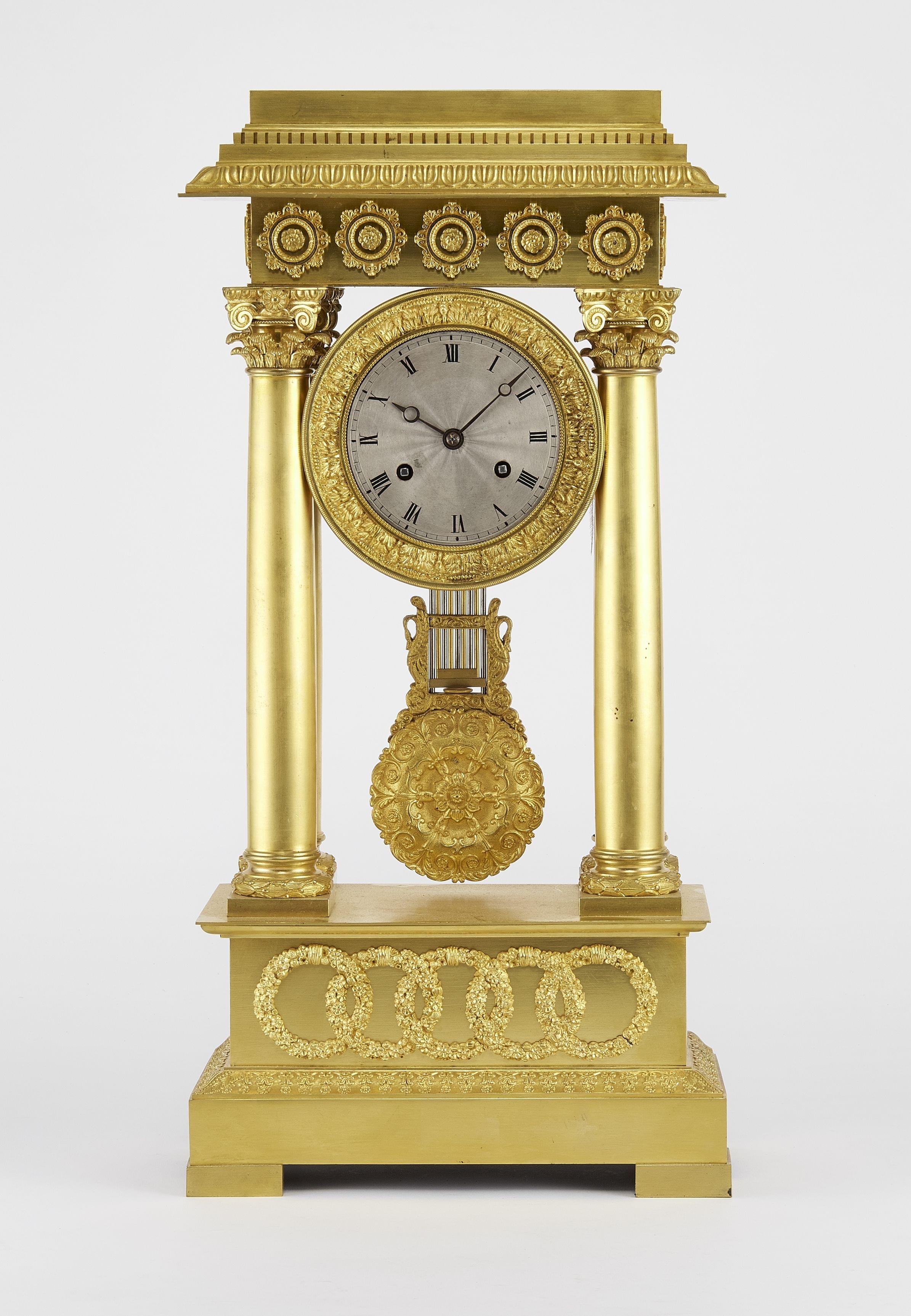 Bronze ciselé et doré, cadran guilloché aux chiffres romains, H 49 cm