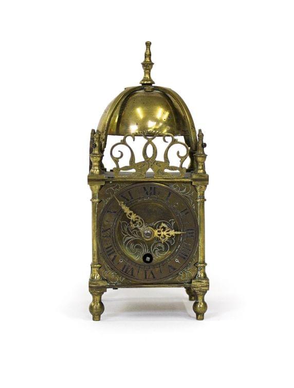 Laiton ajouré et ciselé, aiguilles dorées et chiffres romains noirs, H 16 cm