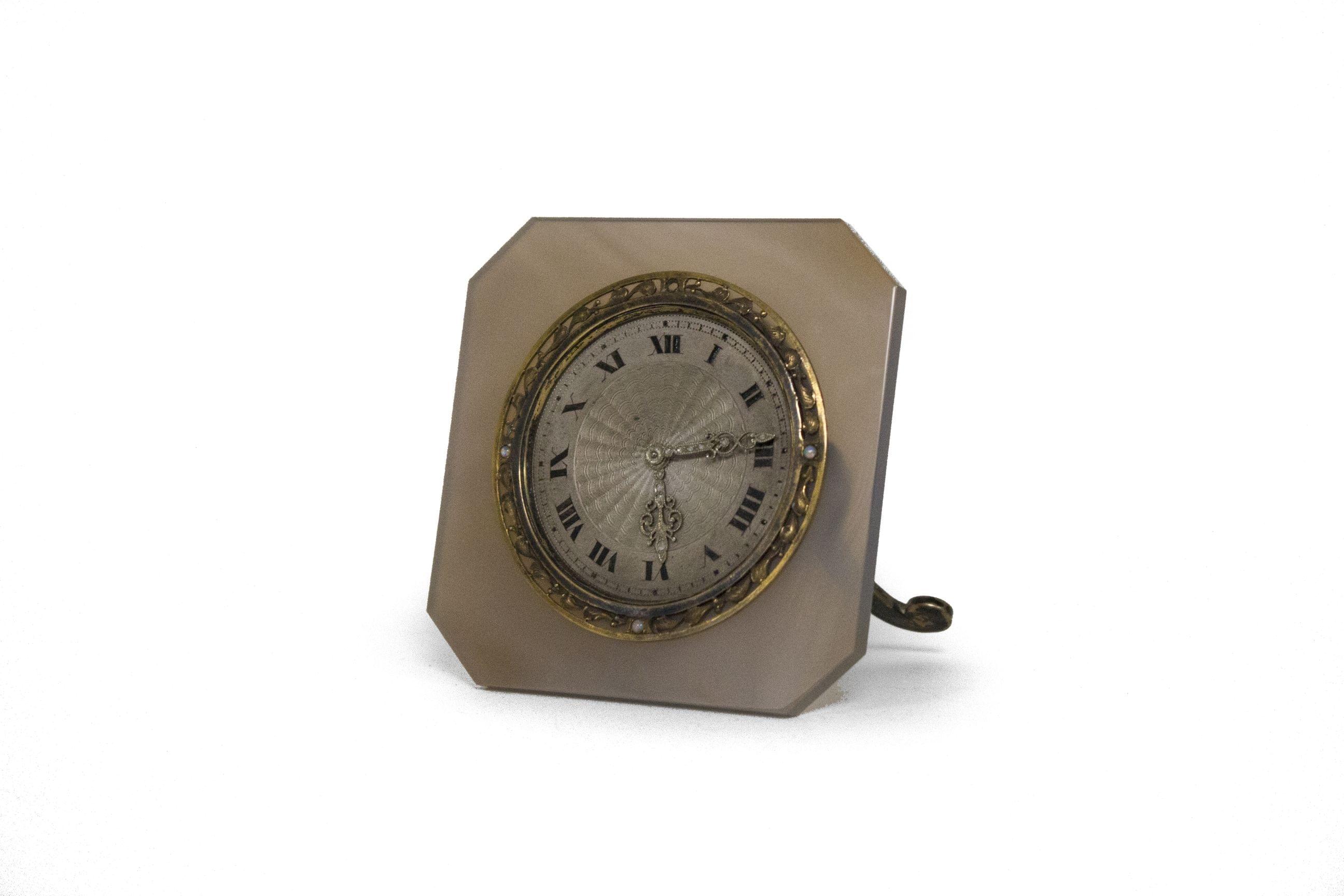 Un tiroir en ceinture, marqueterie de bois fruitier, marbre blan...