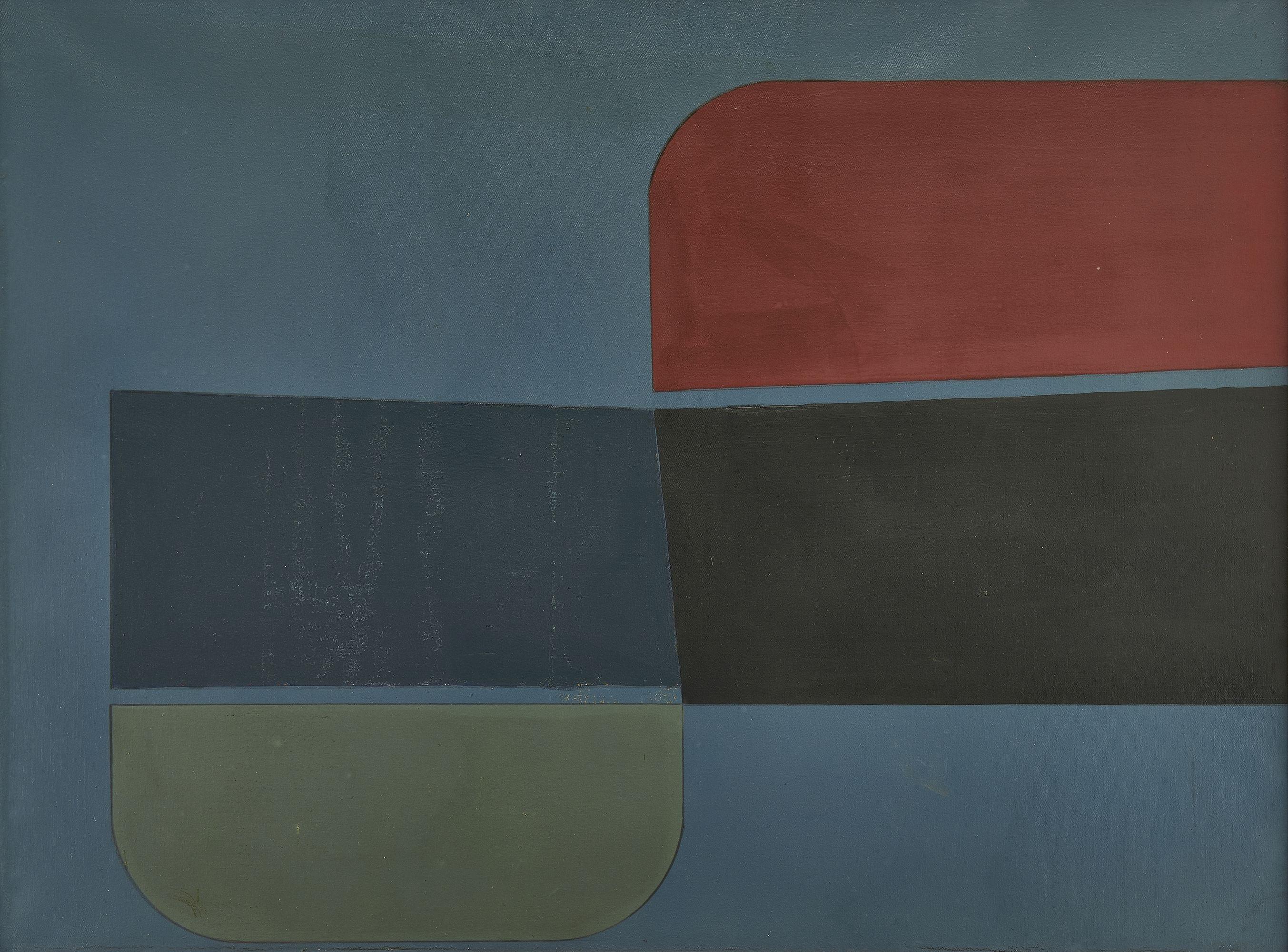 Abstraction, huile sur toile, signée et datée 75 au dos, 60x73 c...