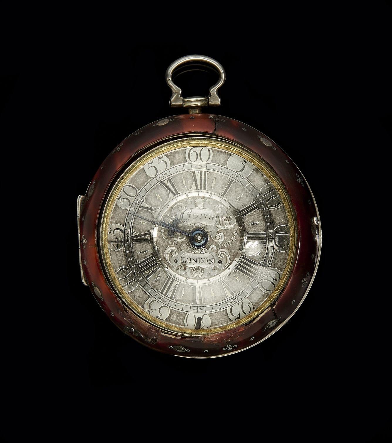 67. Peter Garon London, montre de poche dans son double boîtier en argent et en placage d'écailles