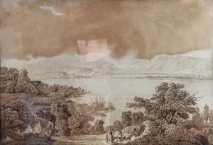 Rapperswil, lavis sur papier, signé et situé, 50x71 cm