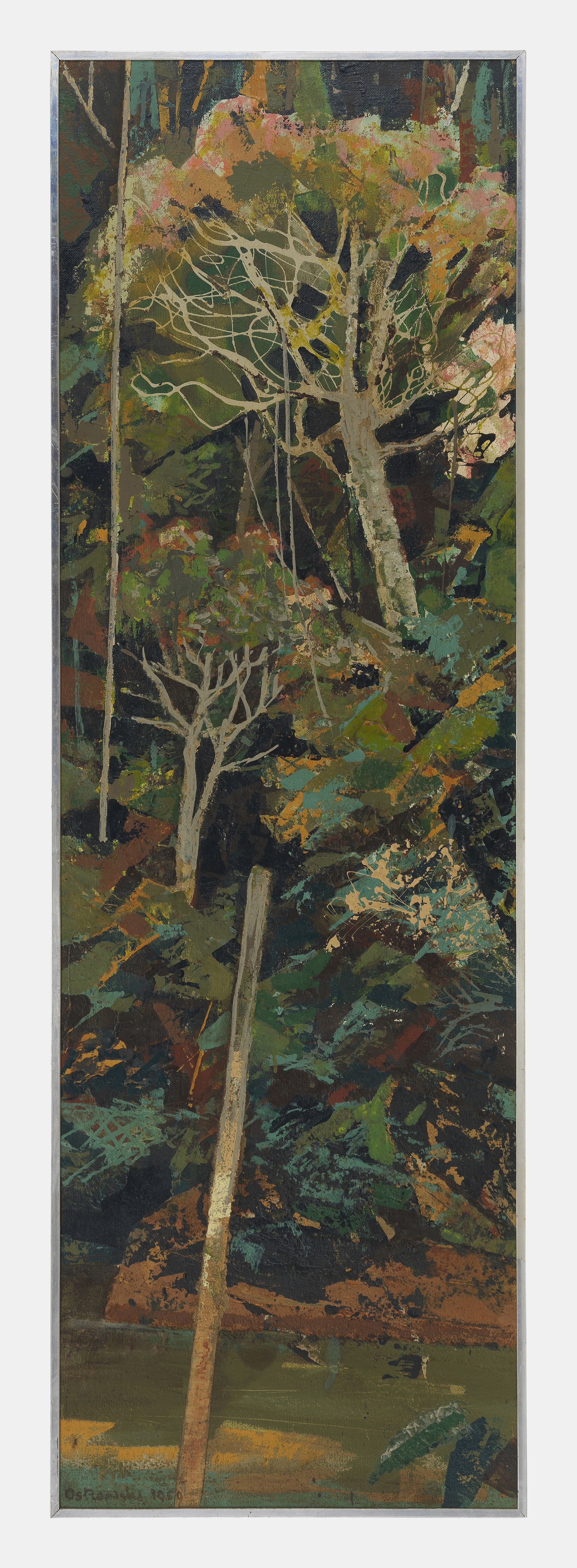 Arbres, huile sur panneau, signée et datée, 1959, 120x 40 cm
