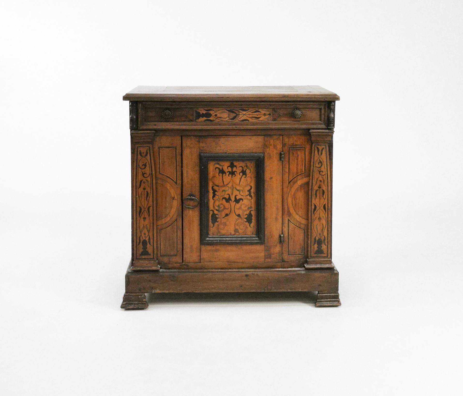 Un tiroir, un vantail, noyer et marqueterie de bois noirci, 83x79x43 cm