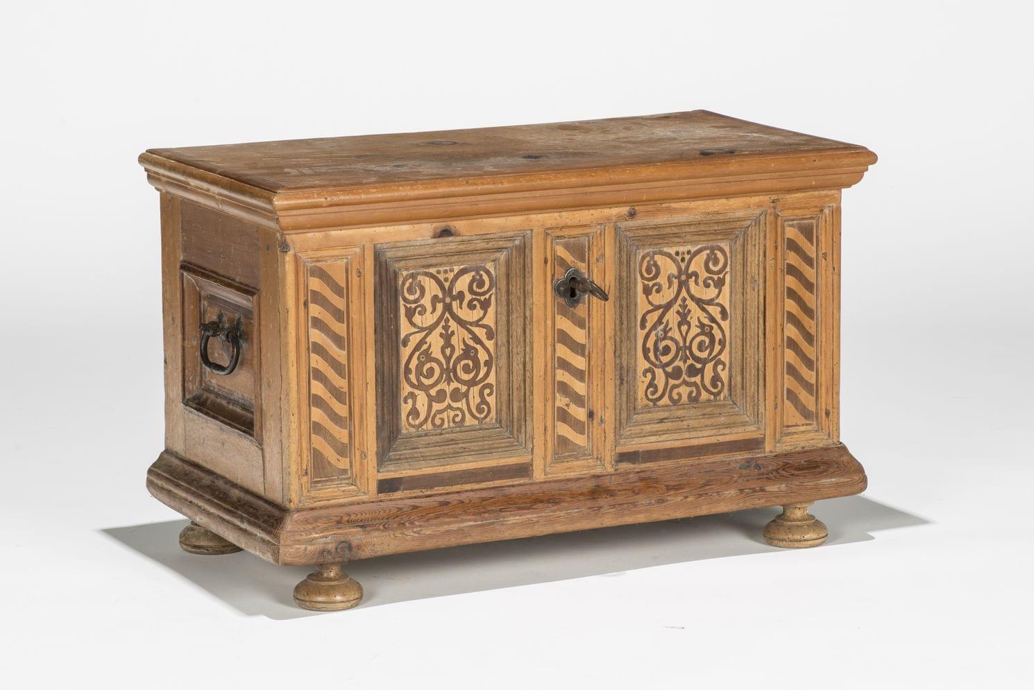 Un vantail et deux tiroirs, bois fruitier et filets de bois clai...