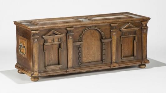 Bois fruitier et noyer, façade architecturée, plateau abattant,...