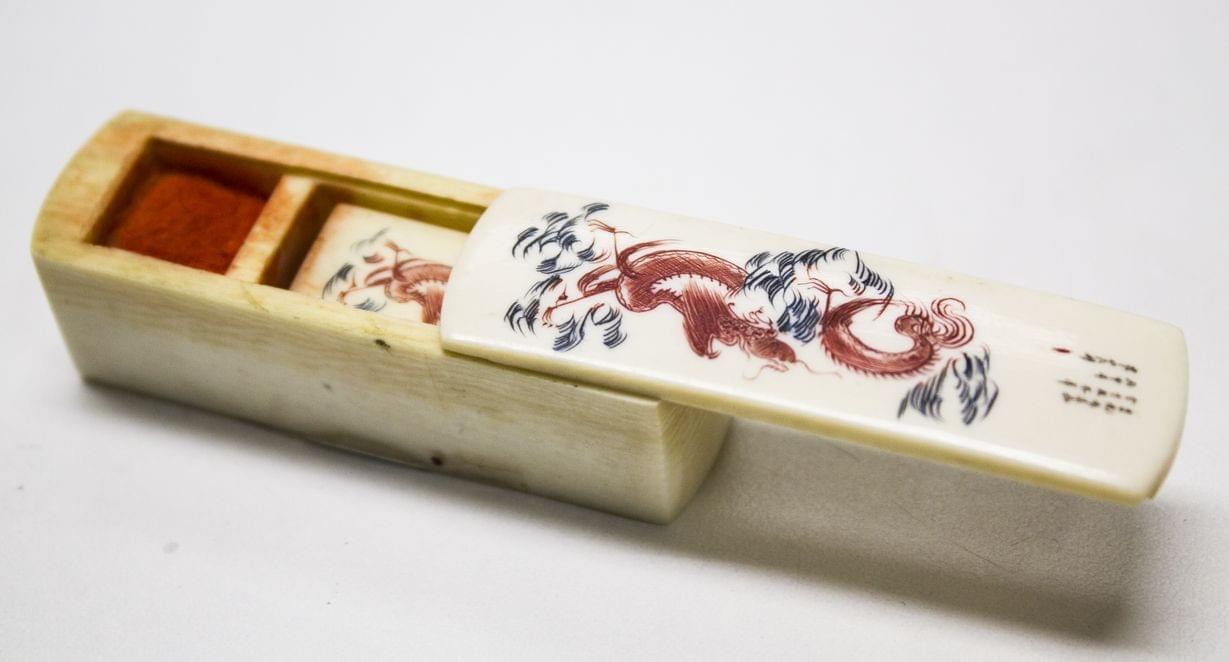 3275. Petit écrin ouvrant sur un tampon à décor d'un dragon