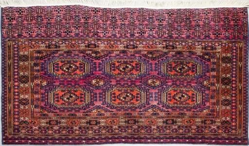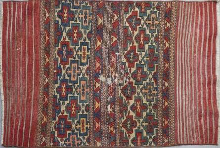 Laine à motifs géométriques rouge jaune et bleu, 145x92 cm