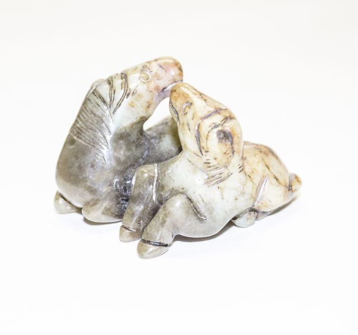 Bronze à décor d'inclusions or et argent, à motif de personnages...