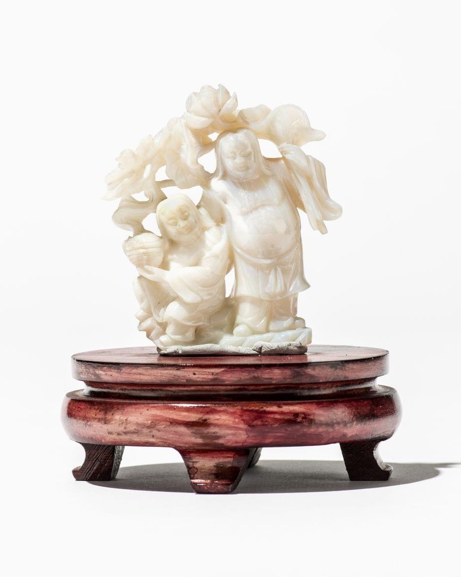 728. Petit groupe figurant deux personnages tenant des nénuphars