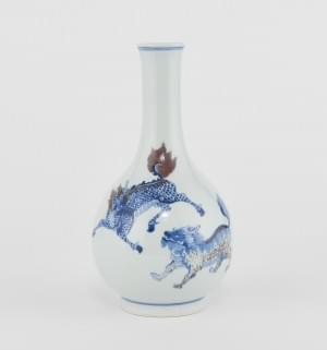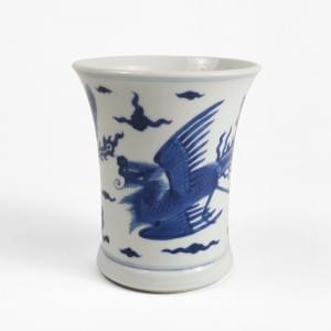 Porcelaine émaillée bleu blanc à décor de phénix, H 12 cm