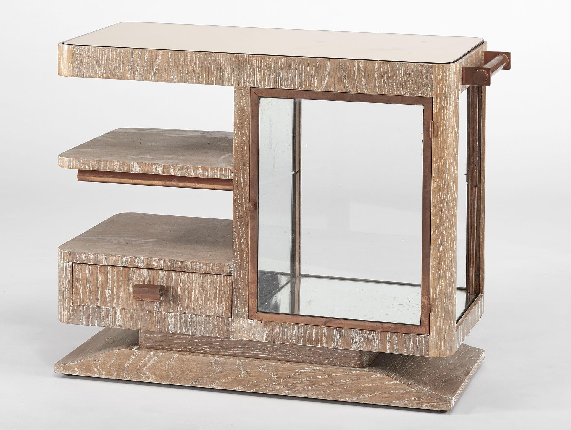 Bois laqué blanc et brun, pans coupés et motifs géométriques app...