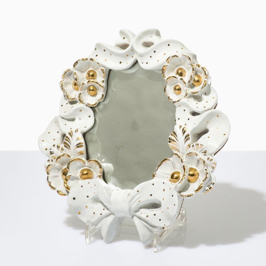129. Petit panier à anse amovible et décor Art Nouveau de fleurs et i...