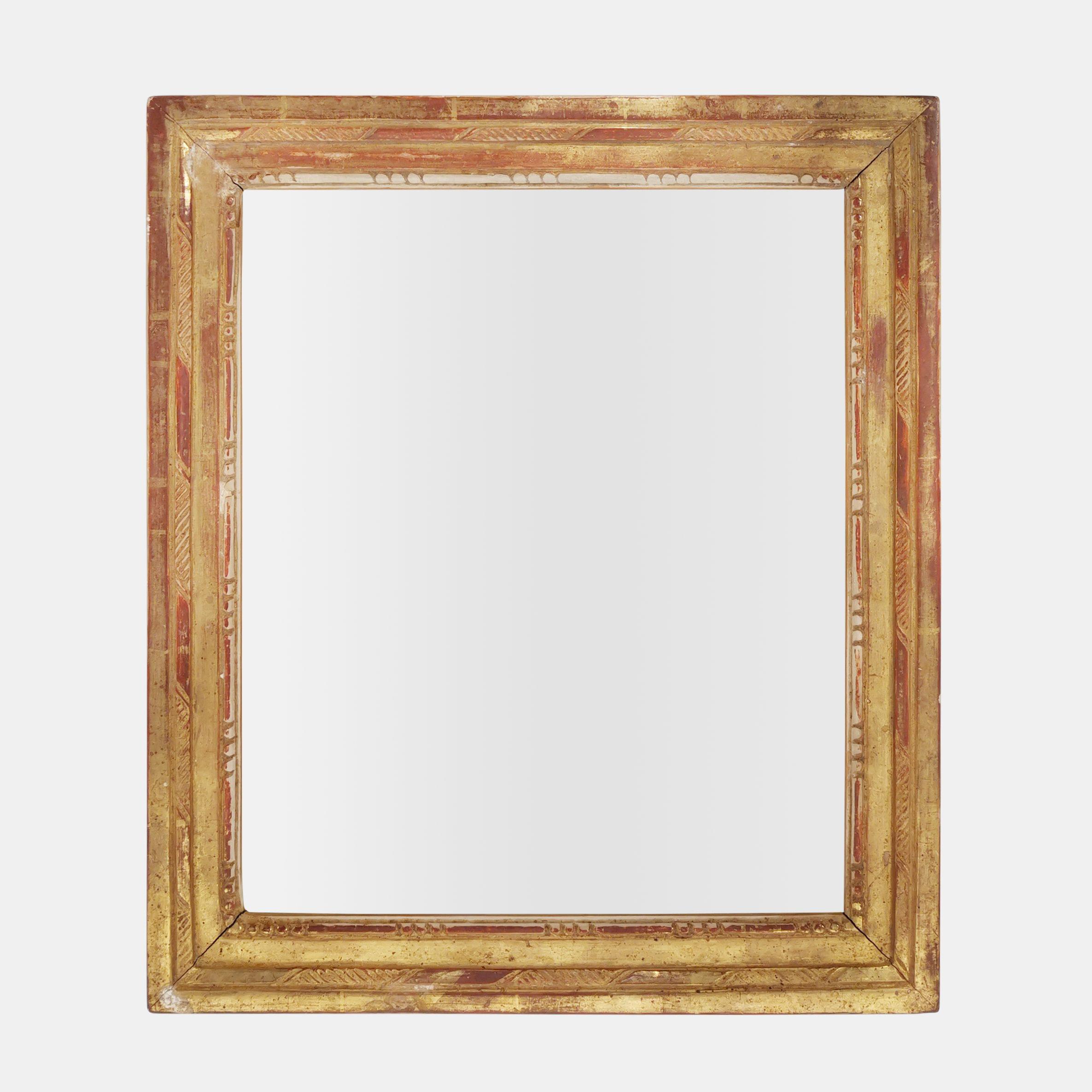 Bois sculpté et doré, glace au mercure, 46,5x40,5 cm