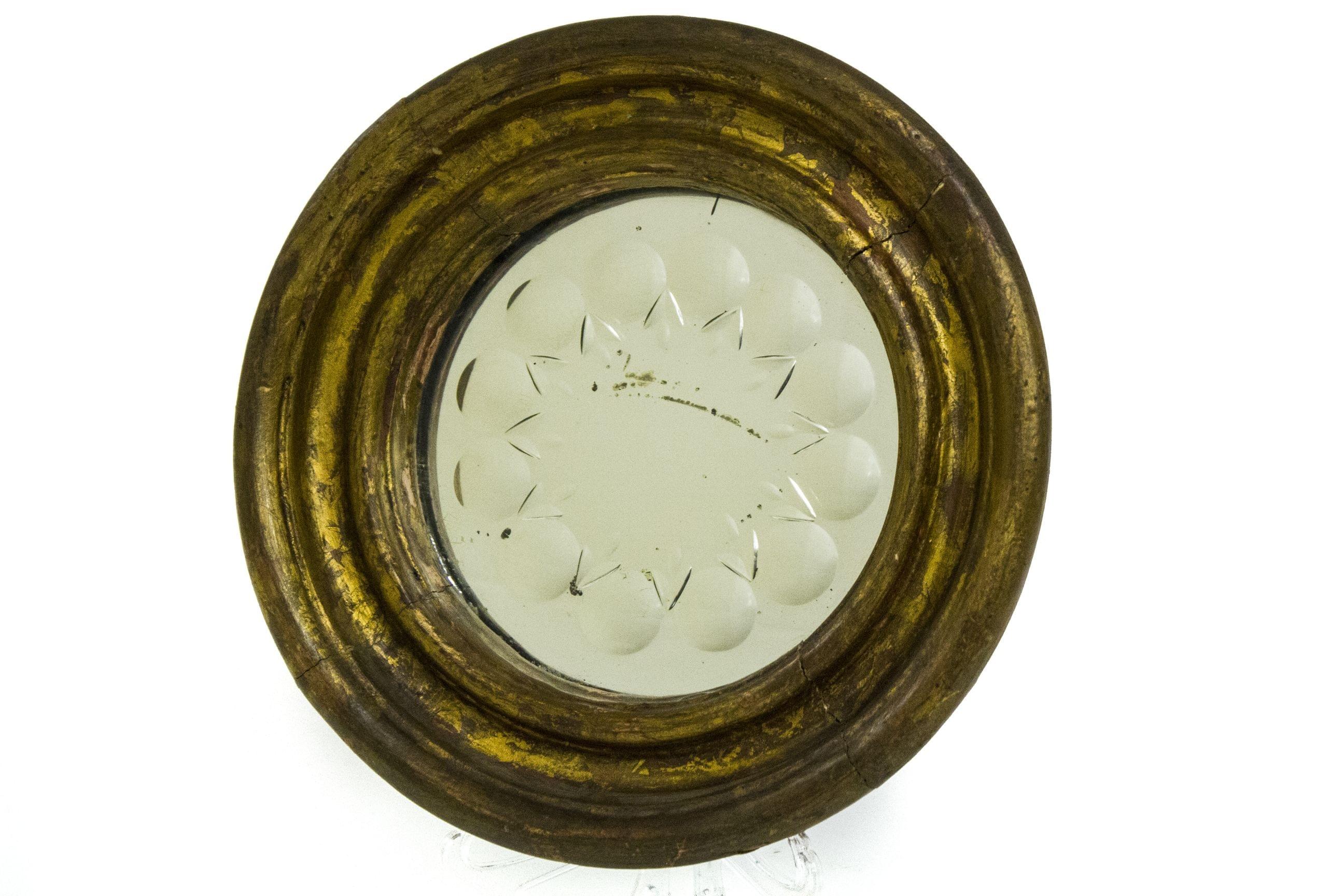 Bois sculpté et doré, glace au mercure, H 55 cm