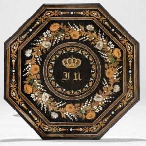 389. Plateau tripode d'époque George IV à motif de coquilles et gravé...