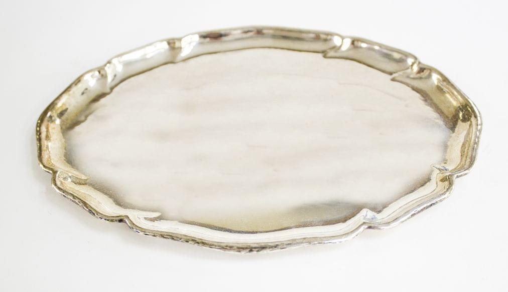 176. Plateau ovale martelé Art Déco orné de quatre volutes