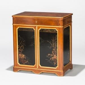 Bois imitation d'acajou, deux vantaux laqués noir et or, XIXe s,...