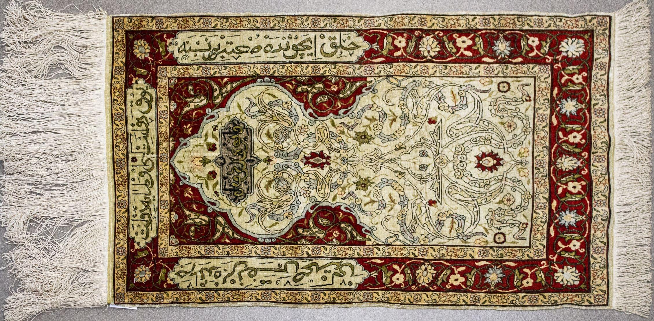 Soie à décor de sourates et d'un mirhab, 92x51 cm