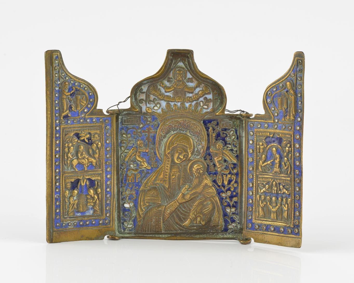 105. Icône de voyage triptyque ouvrant sur trois icônes: Saint Léon d...