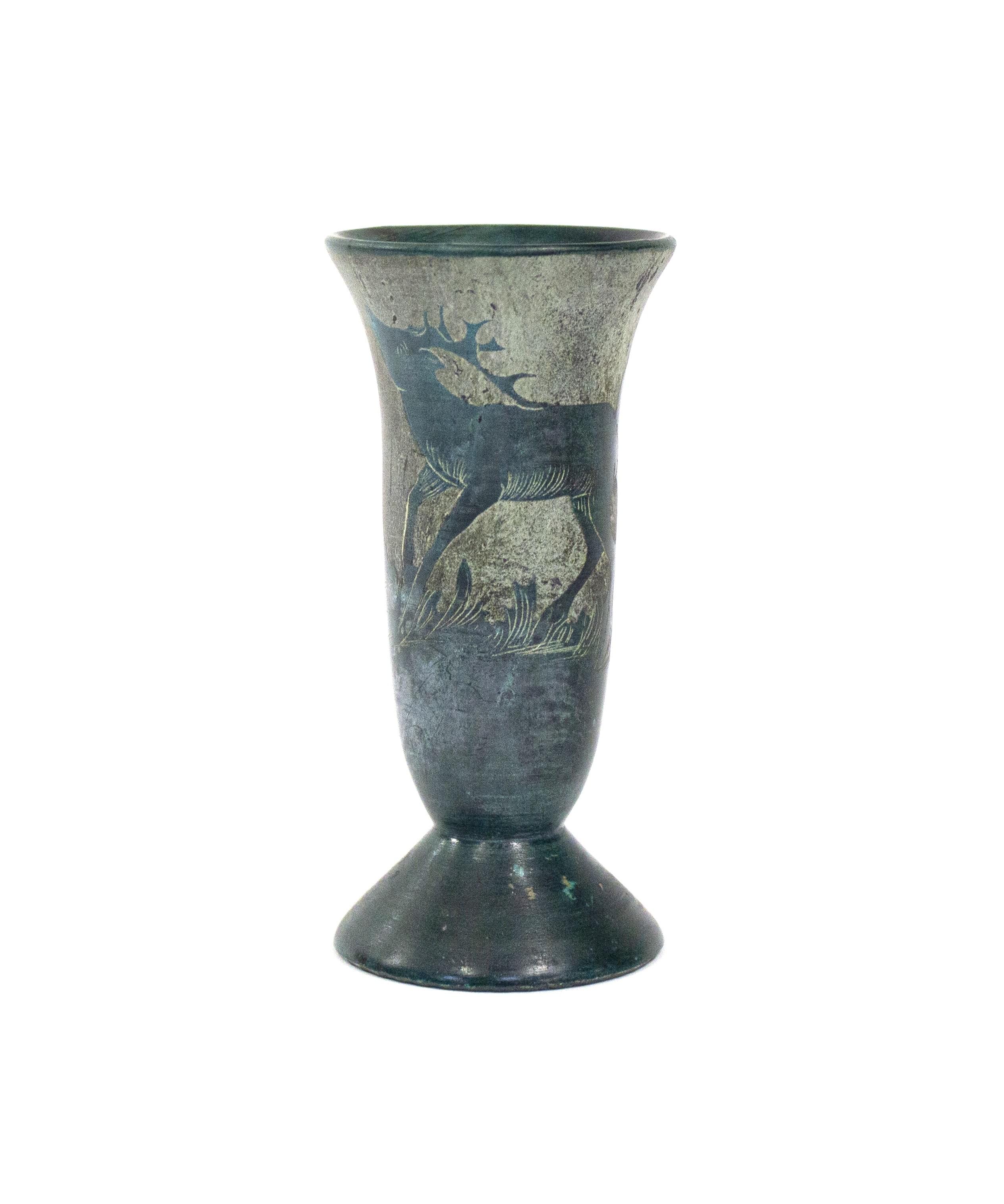 3963. Petit vase à décor de biche et cerf sur fond amati