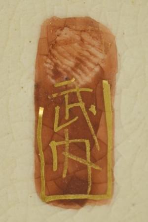 174. Tasse et sous-tasse à décor en camaïeu gris sur fond rose et or