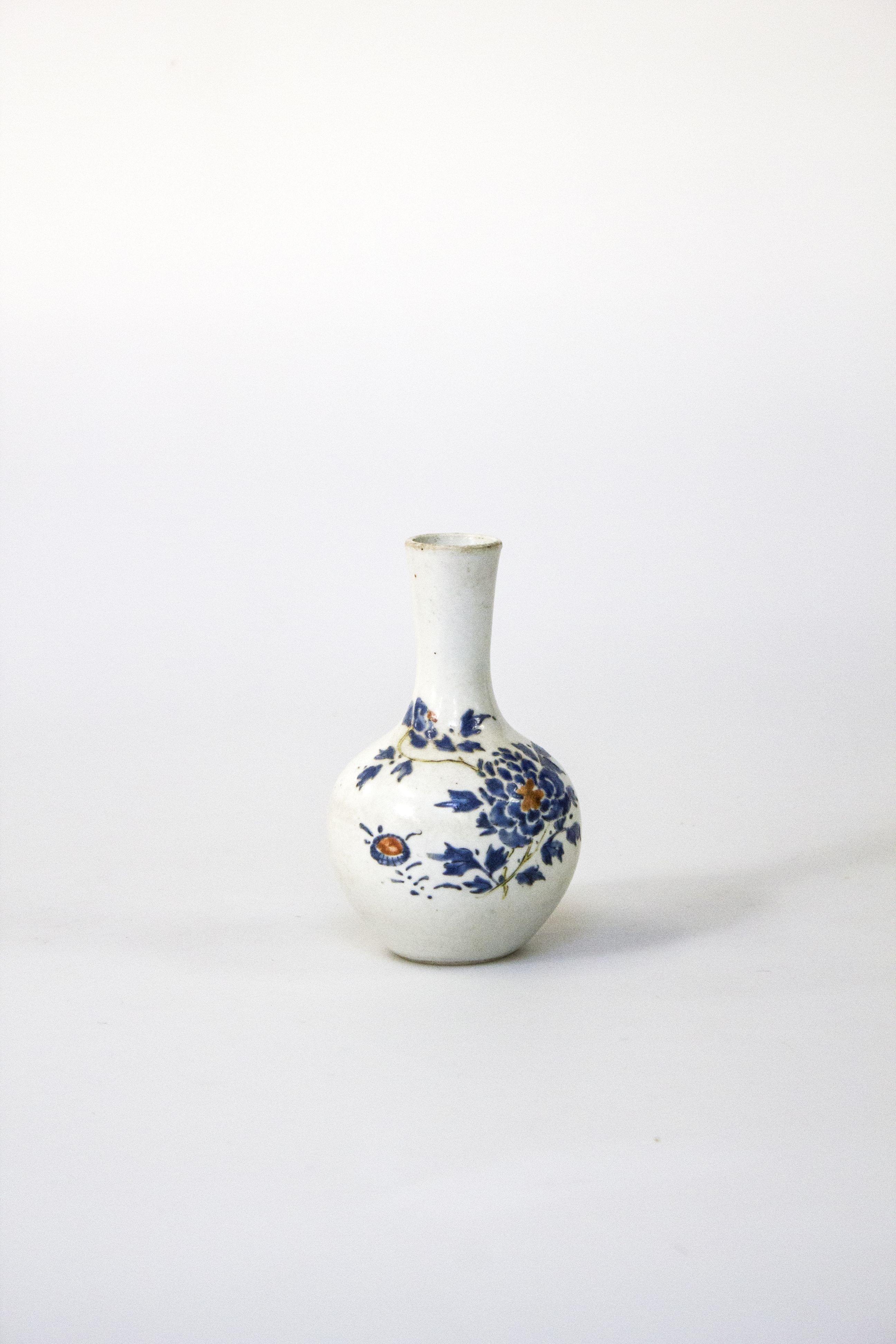Porcelaine émaillée bleu sur fond blanc à décor de fleurs, H 14 cm