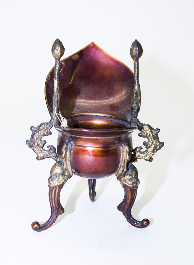 Fer blanc laqué rouge et or, H 11,5 cm