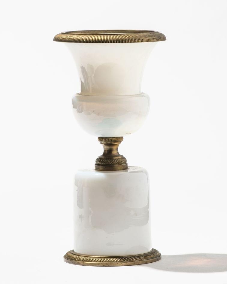 Faïence émaillée polychrome à décor de lys de Florence, H 35 cm
