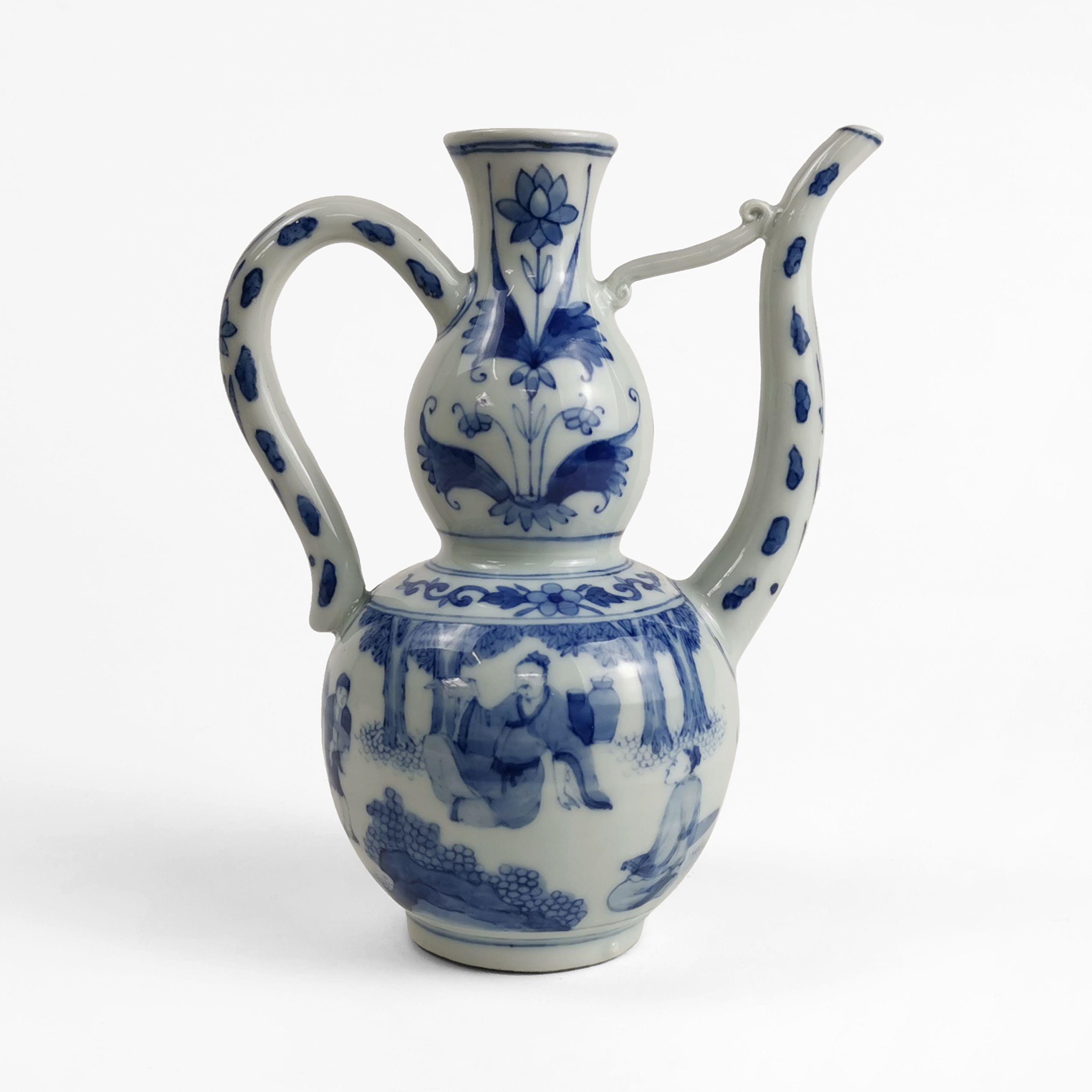 Porcelaine émaillée bleu blanc à décor de personnages dans un jardin, H 20 cm