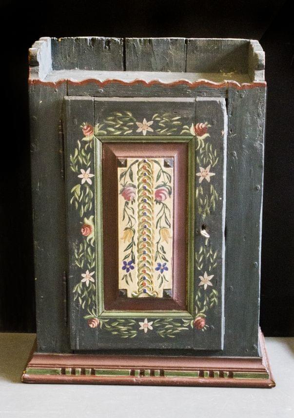Bois peint polychrome à décor de fleurs, Suisse ou Allemagne, XIXe s, 70x53x30 cm