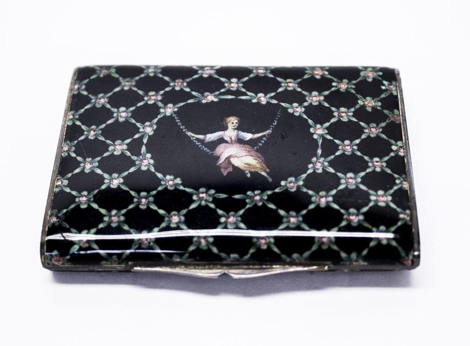 Argent laqué à décor d'une escarpolette, 6x8 cm