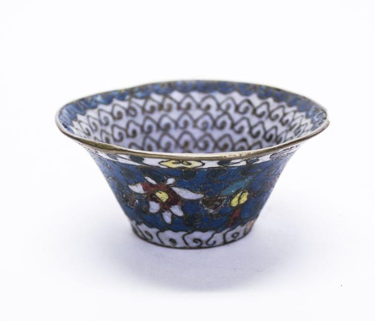 Cuivre et émaux cloisonnés sur fond turquoise, D 9,5 cm