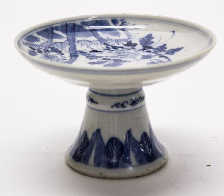 Porcelaine émaillée bleu-blanc à décor floral et calligraphie, Chine, XIXe s, H 7 cm