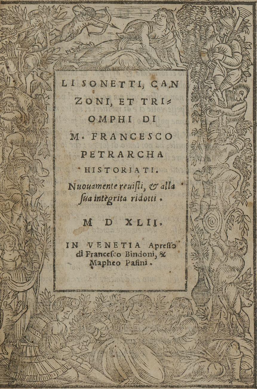 708. PETRARQUE: Li Sonetti Canzoni Et Triomphi Di M. Francesco Petrarcha Historiati. Venise, Fr. Bindoni et Mapheo Pasini, 1542