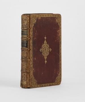 In 12, maroquin rouge très orné, tr. dorées, reliures postérieures, titre inscrit dans un bel encadrement gravé sur bois et cinq figures H.T. gravées sur bois.