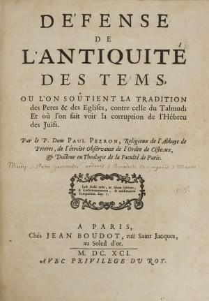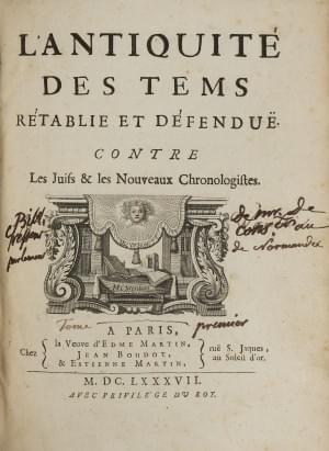 722. PEZRON (Dom Paul) : L’Antiquité des Tems établie et défendue contre Les Juifs et les Nouveaux Chronologistes. Paris, Martin et Boudot, 1687