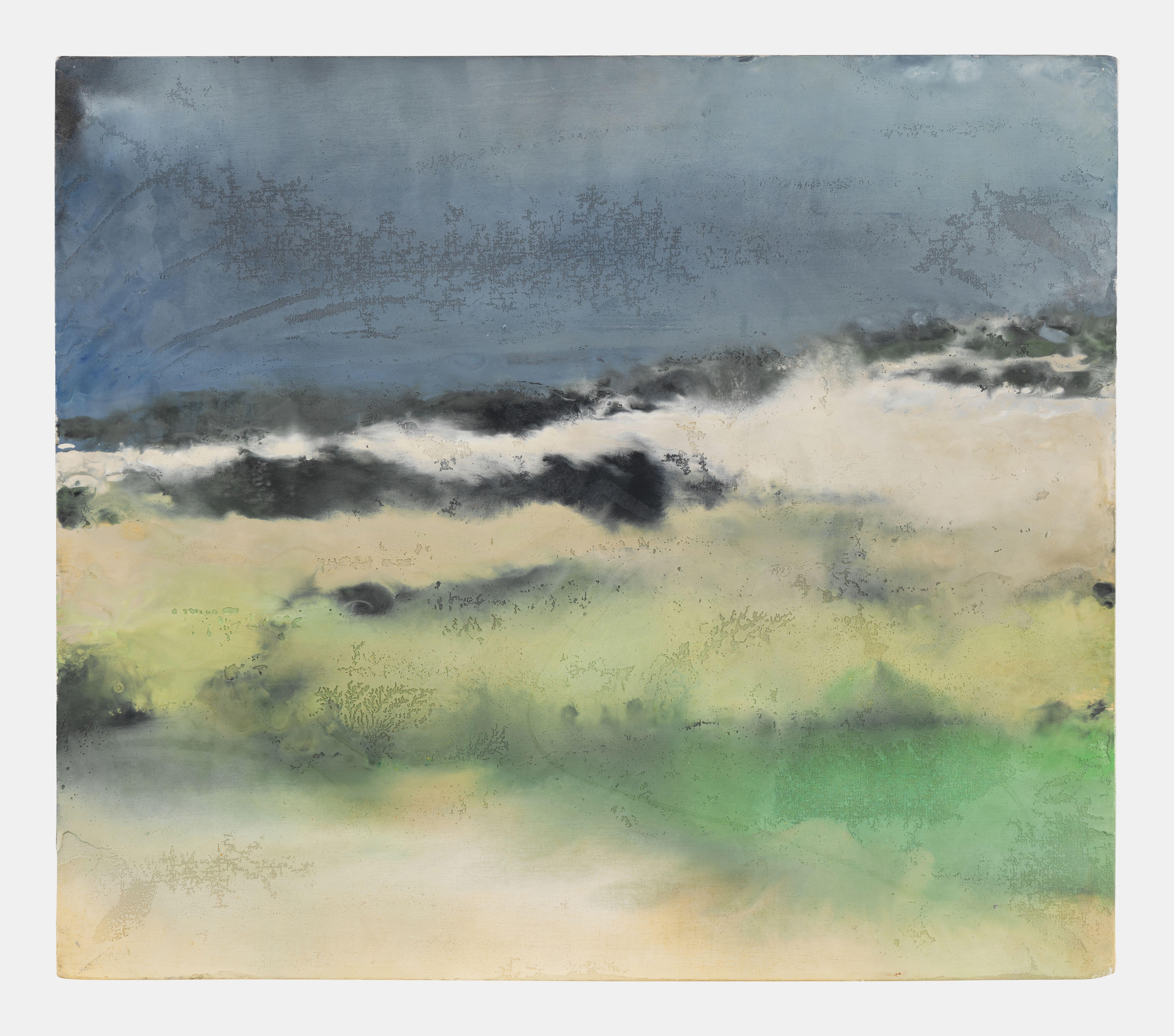 Une Vallée (1994), encaustique sur toile marouflée sur bois, 105...
