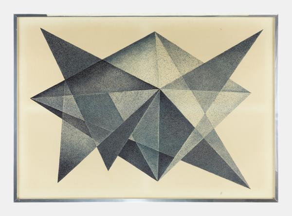 Composition géométrique, stylo sur papier, signée et datée 69 au dos, 71x101 cm. Provenance: Collection Prince et Princesse de Savoie. Provenienza: Collezione Principe e Principessa di Savoia