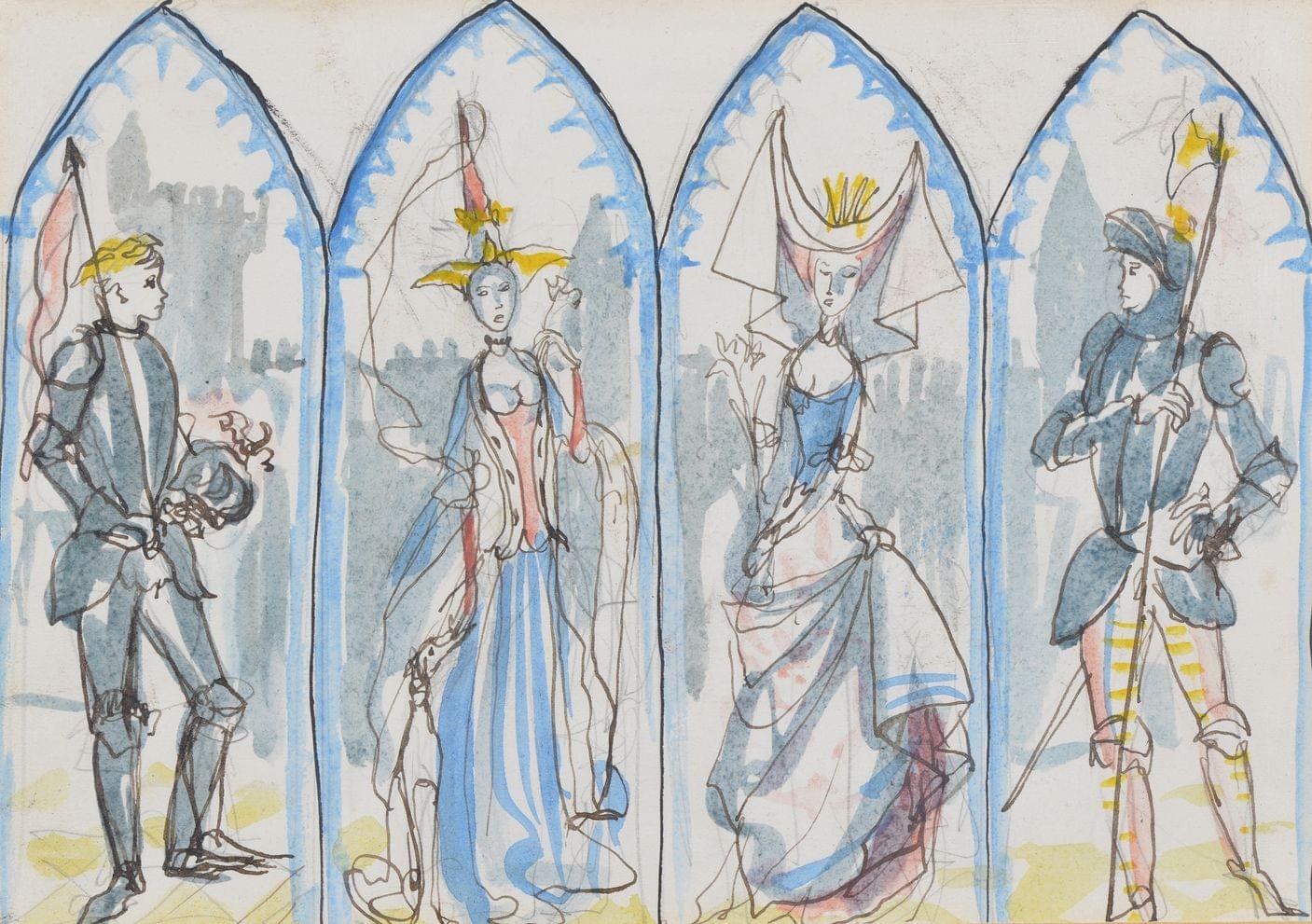 Couple dans un boudoir, aquarelle sur papier signée, 20x8 cm